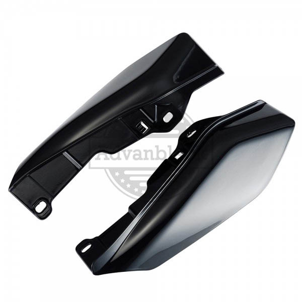 Mid frame deflectors keep heat away. Fit touring models 2009 to 2017. Can be ordered to match a stock harley color.